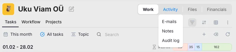 Example: A new accountant is mainly responsible for one large client. Set that client as the default and every new task is automatically linked to the right client.