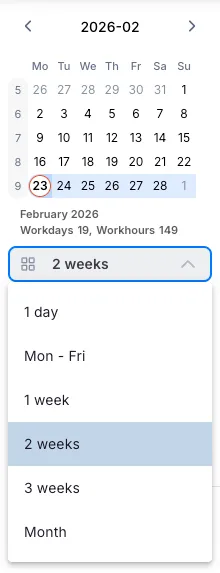 Section titled “2. Calendar: Plan 1, 3, 5, 7 days or a full month”You can now choose how many days to display in the calendar view: 1, 3, 5, 7 days, or a full month. Pick the view that matches your planning needs.