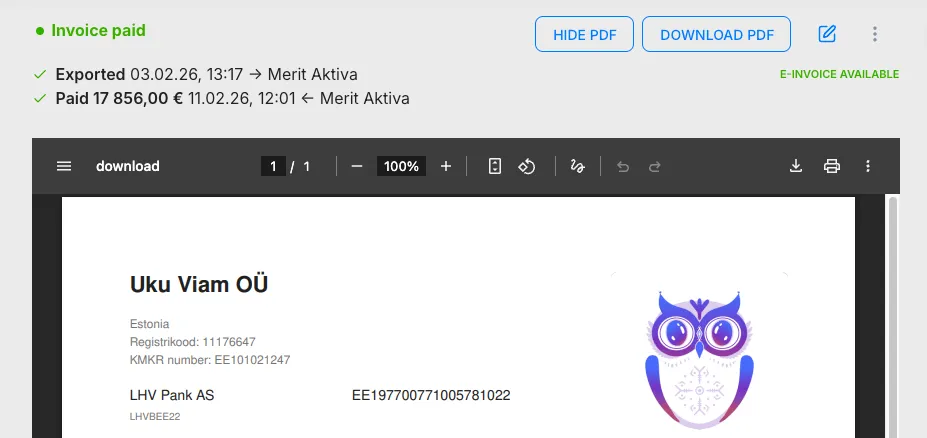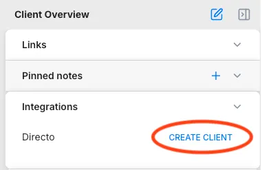 Section titled “11. Integration: Create a Directo client with one click”You can now create a client in Directo directly from the client card with a single button click. The client is created with all the necessary data, without entering anything manually in Directo.