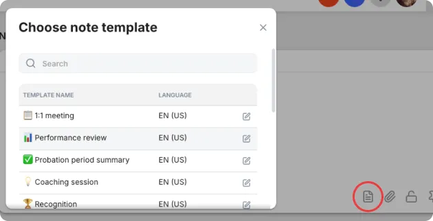 Create a template once, reuse it forever. Annual reviews, one-on-ones, onboarding checklists — the structure is already there when you start a new note.