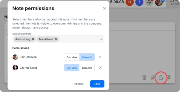 Notes now support per-note access control. Restrict who can view or edit a note — useful for HR reviews, salary discussions, or anything that shouldn’t be visible to the whole team.