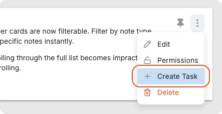 Why: Notes are where follow-ups live. Turning them into trackable work used to mean remembering to create a task and manually linking context. Now it’s one action.