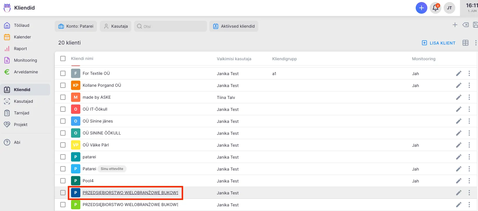 Section titled “Kliendi saab eemaldada ajutiselt kliendinimekirjast.”Sellisel juhul jääb alles tehtud tööde ajalugu ning säilib ülesannete plaan. Hiljem on võimalik ta tagasi nimekirja lisada.