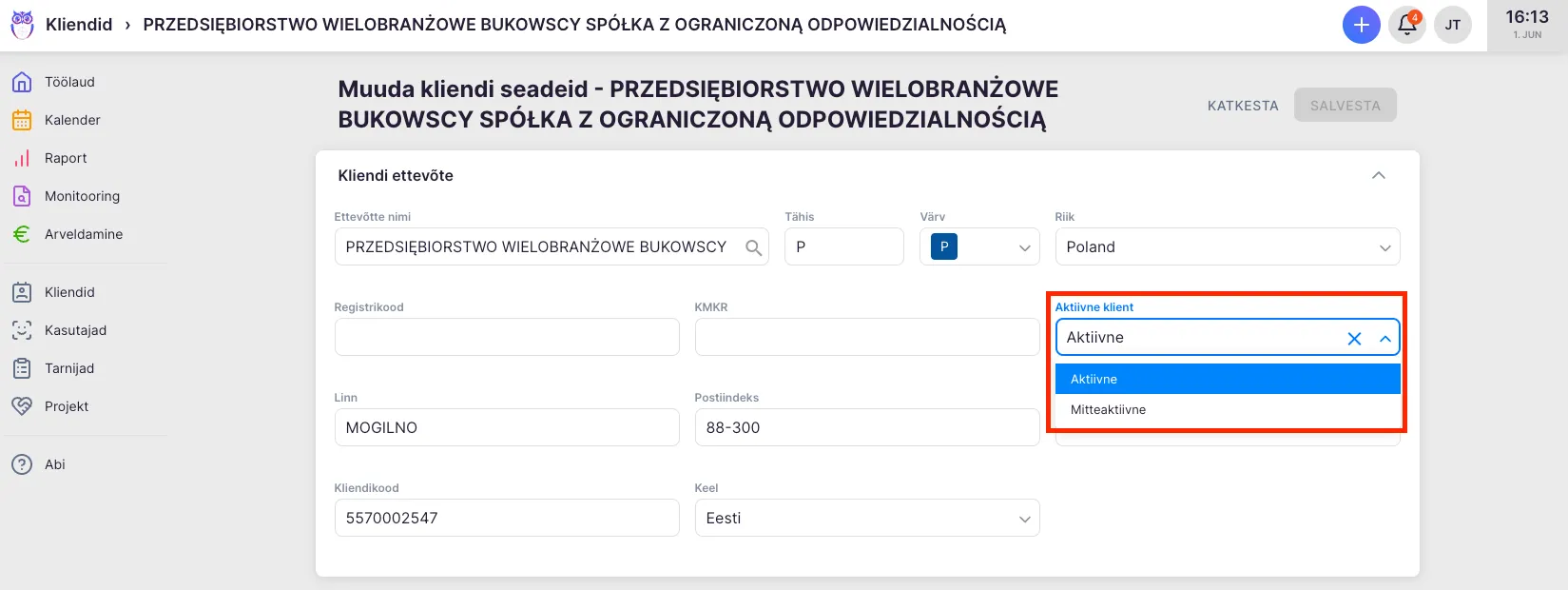 Mine kliendi profiilile ja korda tegevust, sel korral vali staatuseks “Aktiivne”