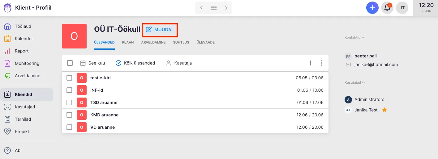 Avaneb vastava kliendi profiil. Vajuta pliiatsi ikoonile kliendi nime kõrval.