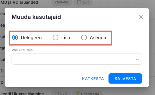 Delegeeri kasutajatele – määra valitud ülesanded uutele vastutajatele.