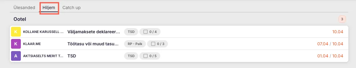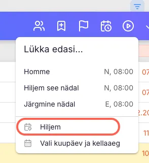 - Valik “Hiljem” – ülesanded liiguvad Töölaua “Hiljem” vaatesse.
