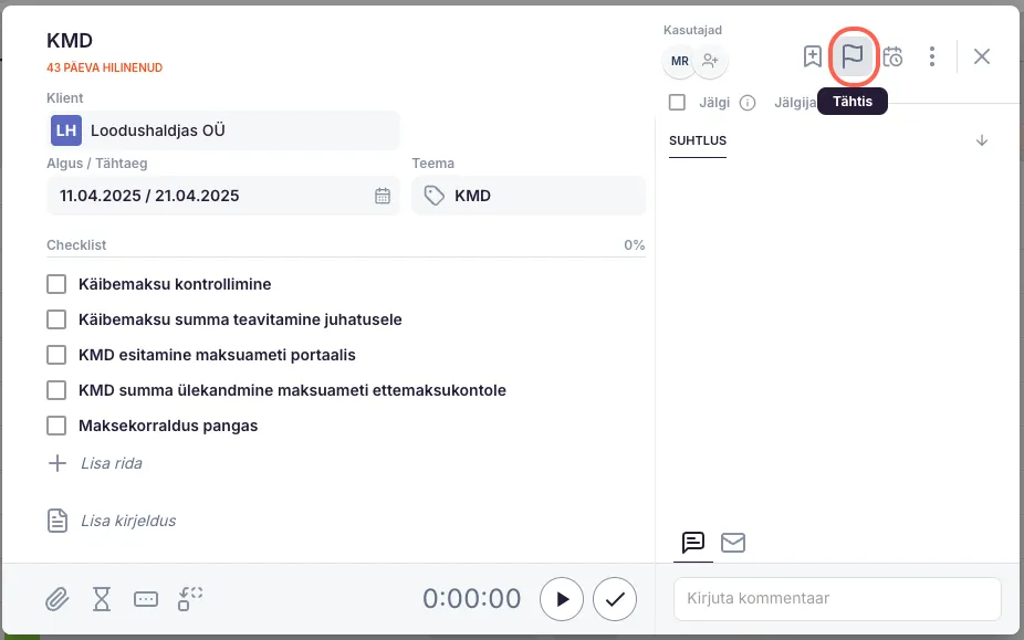Kliki lipuga ikoonil ja ülesanne ongi tähtsaks märgitud.