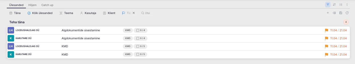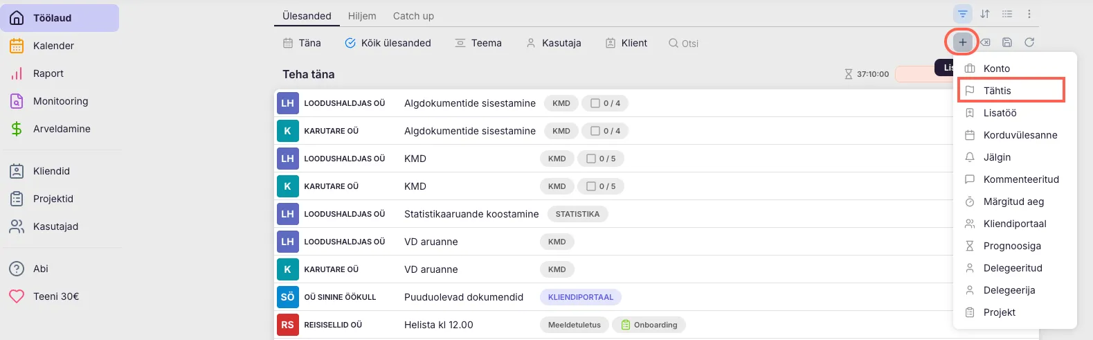 NB! Saad salvestada endale Töölauda, mis kuvab ainult tähtsad ülesanded. Loe siit, kuidas Töölauda salvestada.