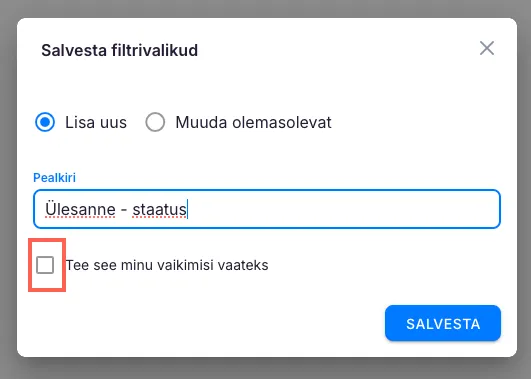 Lisa filtrivalikule sobiv nimi ning salvesta see.