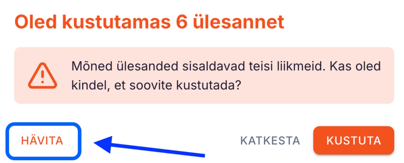 ⚠️ NB! Hävitatud ülesandeid ei saa taastada.