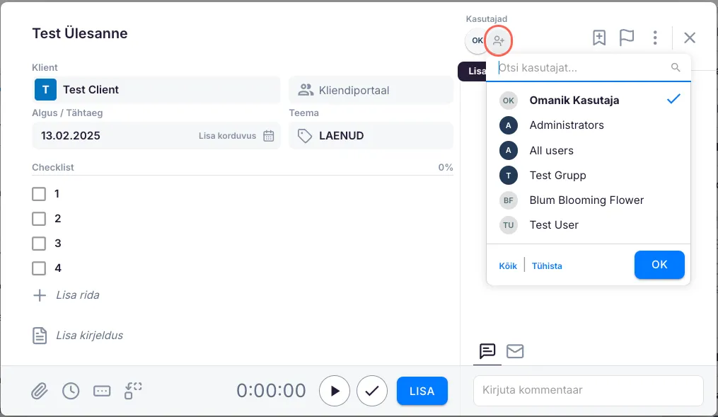 Ülesande jagamiseks lisa kasutajaid juurde.