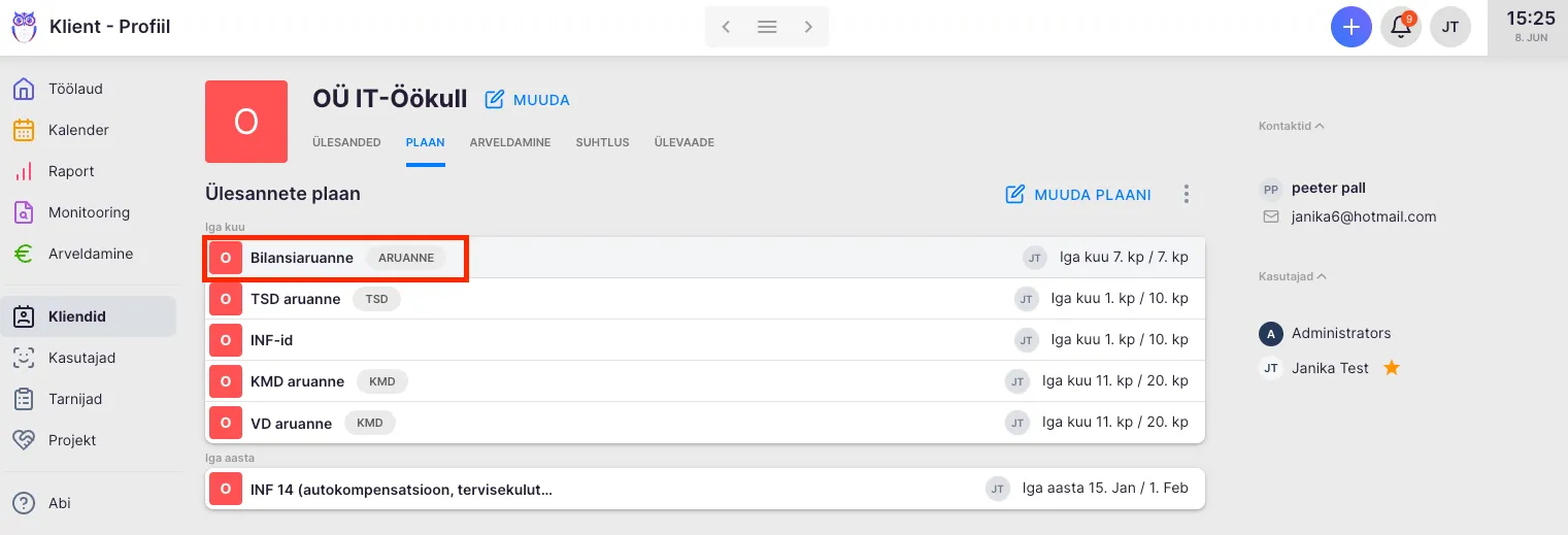 Section titled “Kliendi tööplaanis”Vali peamenüüst “Kliendid” ning kliki kliendile, kelle ülesandeid soovid jagada või suunata.