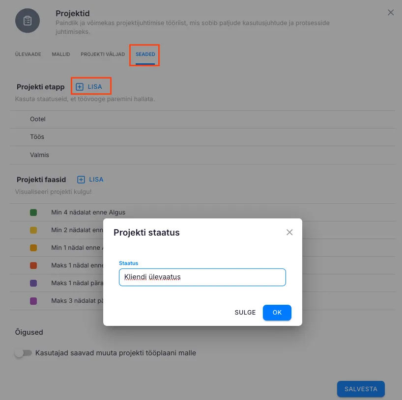 Nii näed kiiresti, millised tööd kuuluvad millises etapis olevatesse projektidesse.