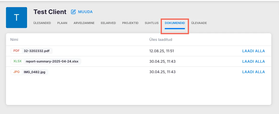 Section titled “Kuidas dokumente kustutada?”Oluline: Dokumentide nimekirjast dokumenti ei saa kustutada.
