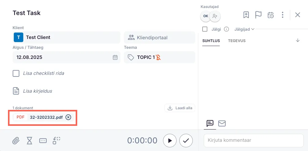 - Avab vastava ülesande, kuhu dokument on lisatud