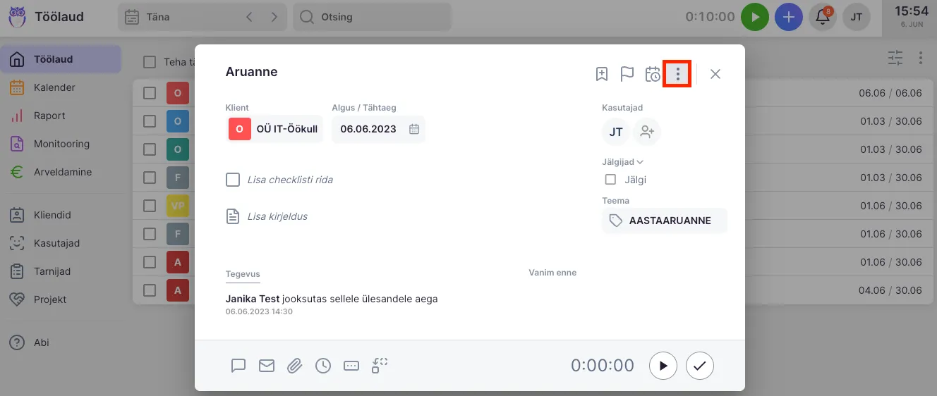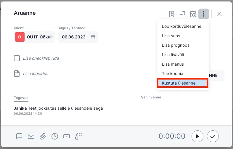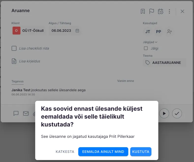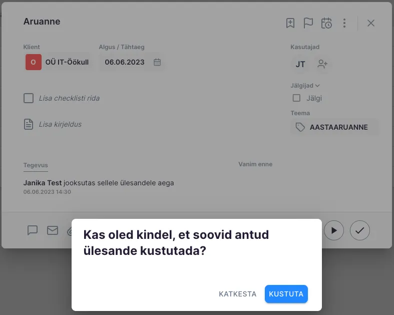 Section titled “Kuidas kustutada ühte ülesannet?”- Kliki ülesandel, mida soovid kustutada.