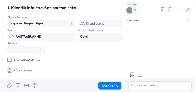 Ülesande sisestamiseks on kohustuslikud väljad: