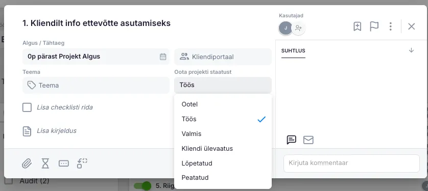 Vajadusel saad staatust üksikute ülesannete kaupa muuta.