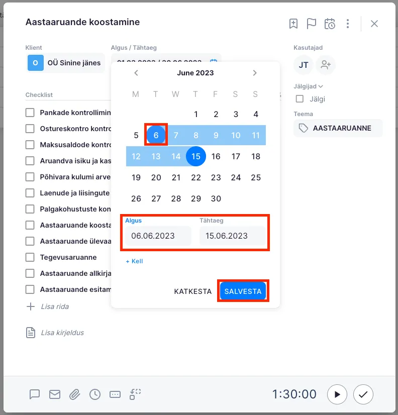 Nipp: Kui tuleb ette, et pead tihti mõne ülesande tähtaega muutma, on mõistlik seda teha juba kliendiplaanis või mallis. Loe lähemalt, kuidas muuta kliendi tööplaani ja ülesannete malli.