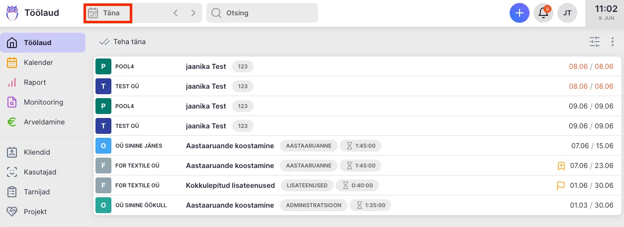 NB! Hilinenud ülesanded jäävad alati töölaual kõige esimesteks.