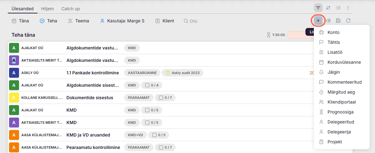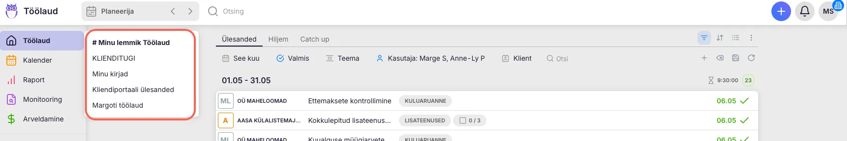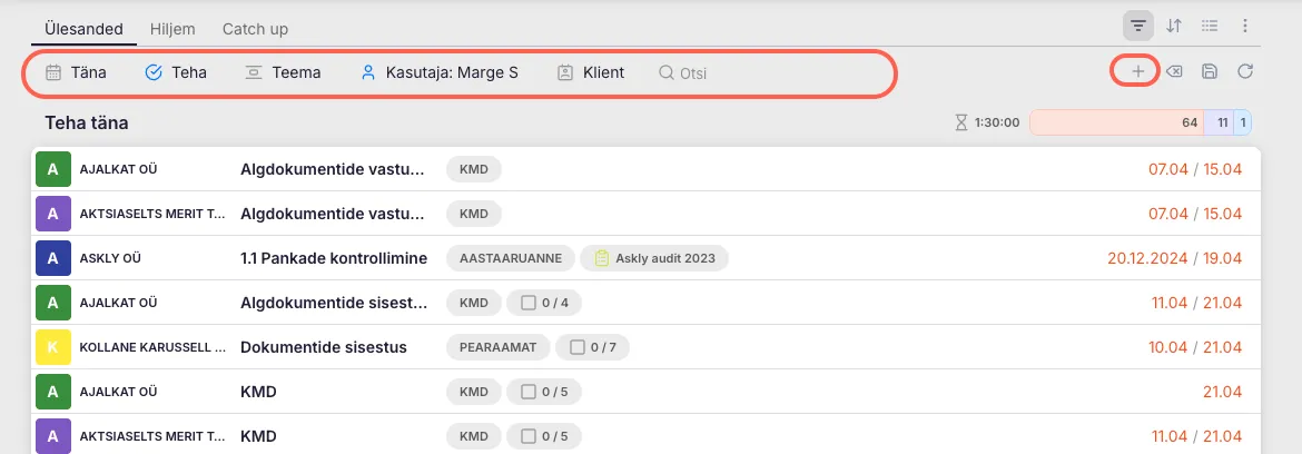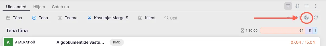 Kui soovid töölaual olevatest ülesannetest veel paremat ülevaadet ning filtreerida neid endale sobival viisil, kasuta selleks töölaua otsingu vaadet ning selle salvestamise võimalust.
