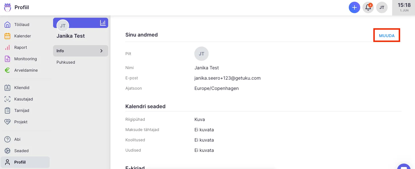Järgmisena tuleb minna profiili muutma, vajutades “Muuda”: