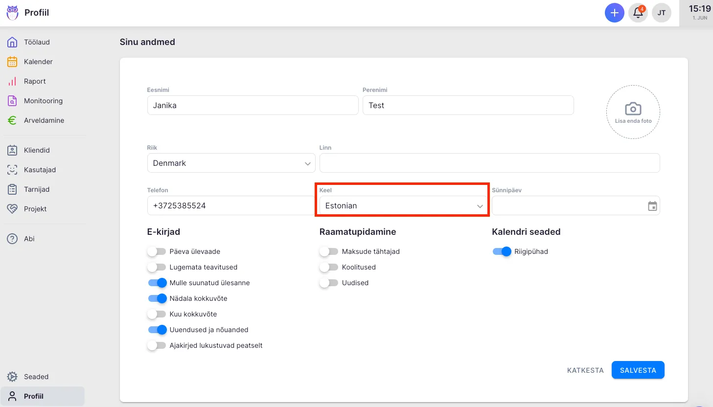 Section titled “Kuidas vahetada keelt?”Sisseloginud kasutaja saab Uku töökeelt muuta, valides peamenüüst “Profiil”
