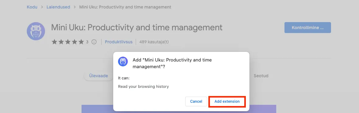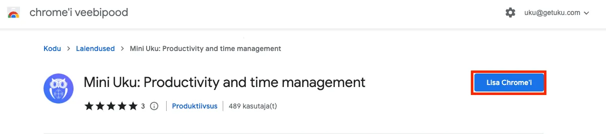 Uues aknas avaneb Chrome veebipood, mille kaudu saadki Mini-Uku edukalt installeerida, klikkides nupul “add to Chrome”. Mini-Uku installeerimine on tasuta.