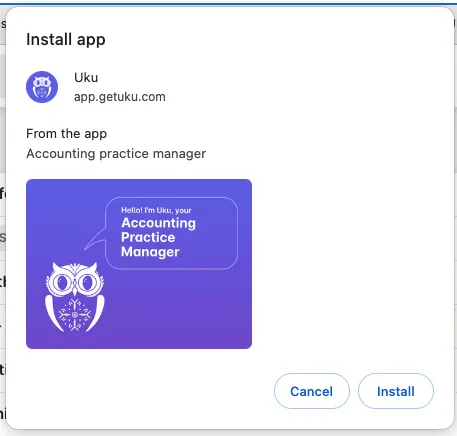Section titled “Kuidas kasutada mini-Ukut veebirakendusena arvuti töölaual?”Kui oled edukalt installinud mini-Uku ja soovid seda kasutada veebirakendusena oma arvuti töölaual, vaata brauseri aadressireale ning otsi see sümbol: