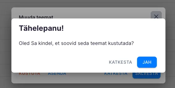 - Kliki kustutatava teema kõrval asuvale pliiatsi ikoonile ning vali “Kustuta”. Enne kustutamist küsib Uku üle, kas oled kustutamise kindel.