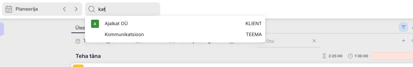 Kui sisestad otsingusõna ilma Enter-nuppu vajutamata, otsib süsteem klientide, kontode ja teemade nimedest.