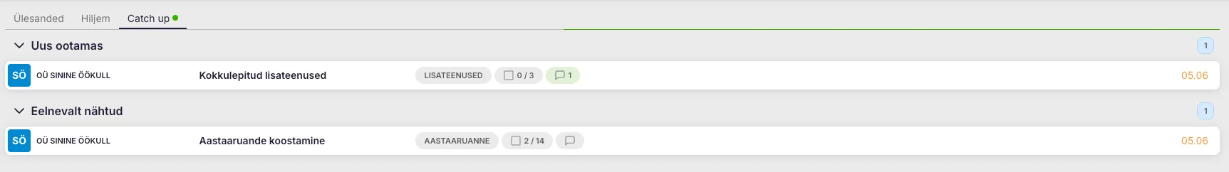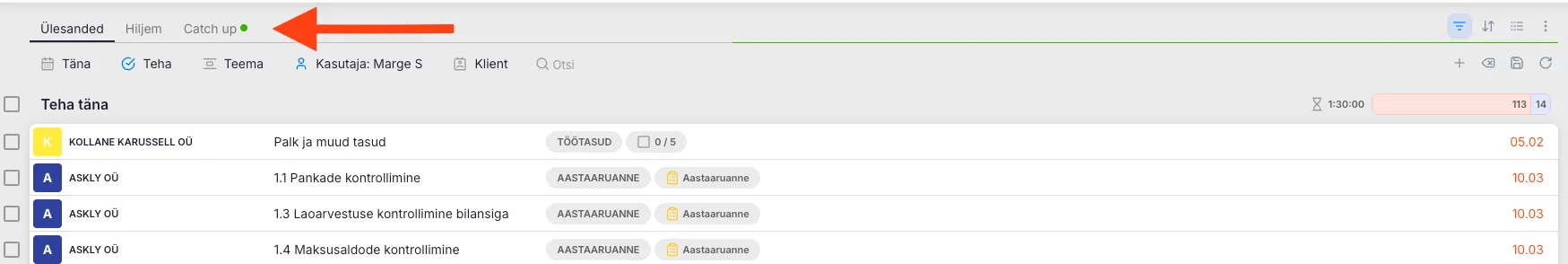 Avatud ülesanded jäävad nähtavale “Catch up ” vaatesse seni, kuni need on märgitud tehtuks.