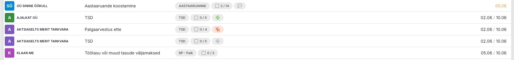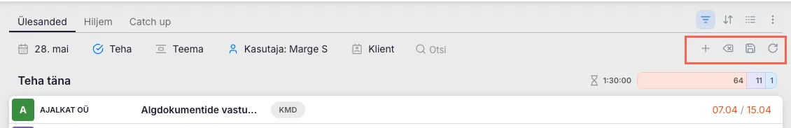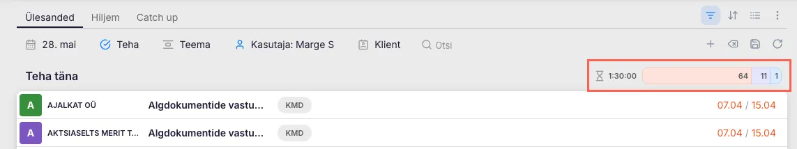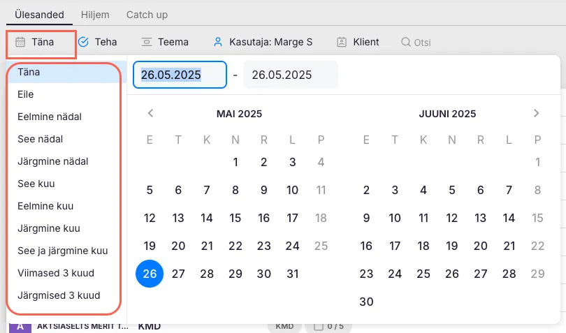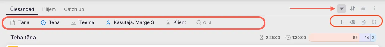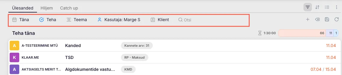 Section titled “Töölaua filtrid”Filtrid asuvad Töölaua ülaservas ja võimaldavad ülesandeid täpselt välja otsida: