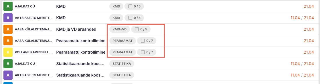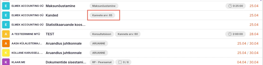 Kui ülesande tähtaeg on täna, kuvatakse kuupäev oranžina.