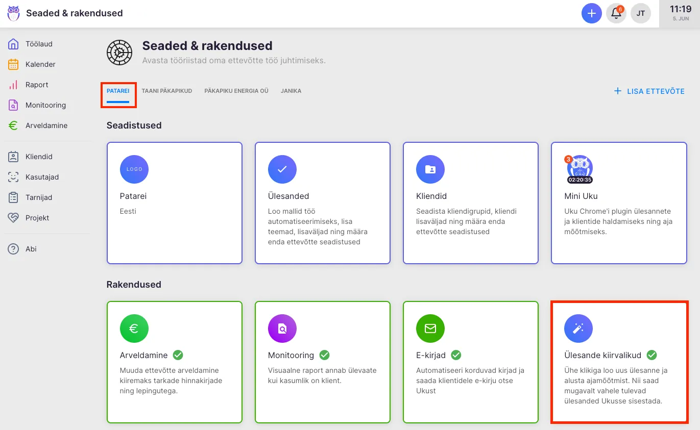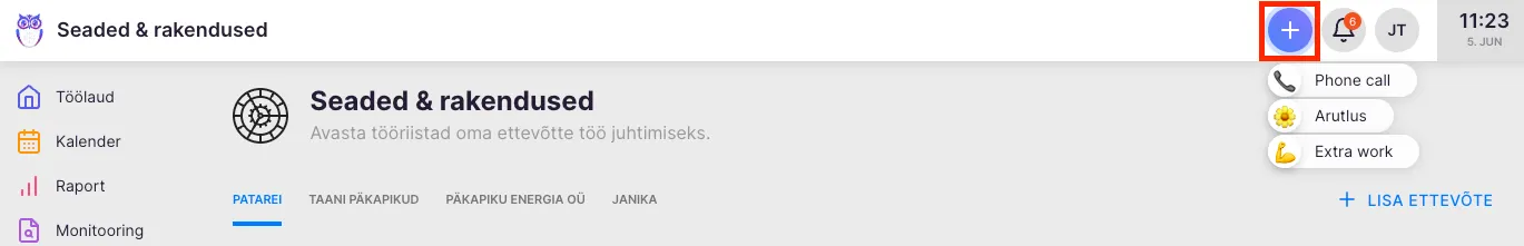 - Ülesande lõppedes saad täpsustada klienti ja muid andmeid.