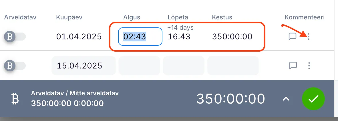- Seejärel sisesta uus ajakiri õige alguse, lõpu ja kestusega.