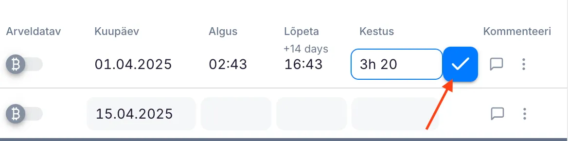 - Kinnita muudatused, vajutades sinisele linnukesele.