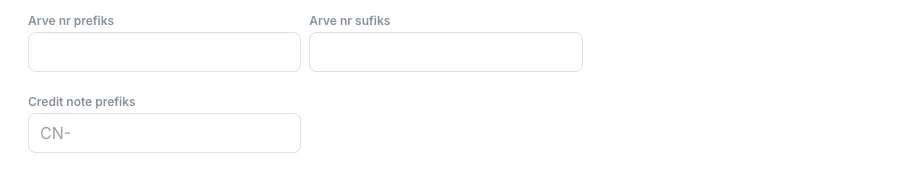 Näide: eesliide „INV-“ ja järelliide „-2025“ → arve 100 = INV-100-2025.