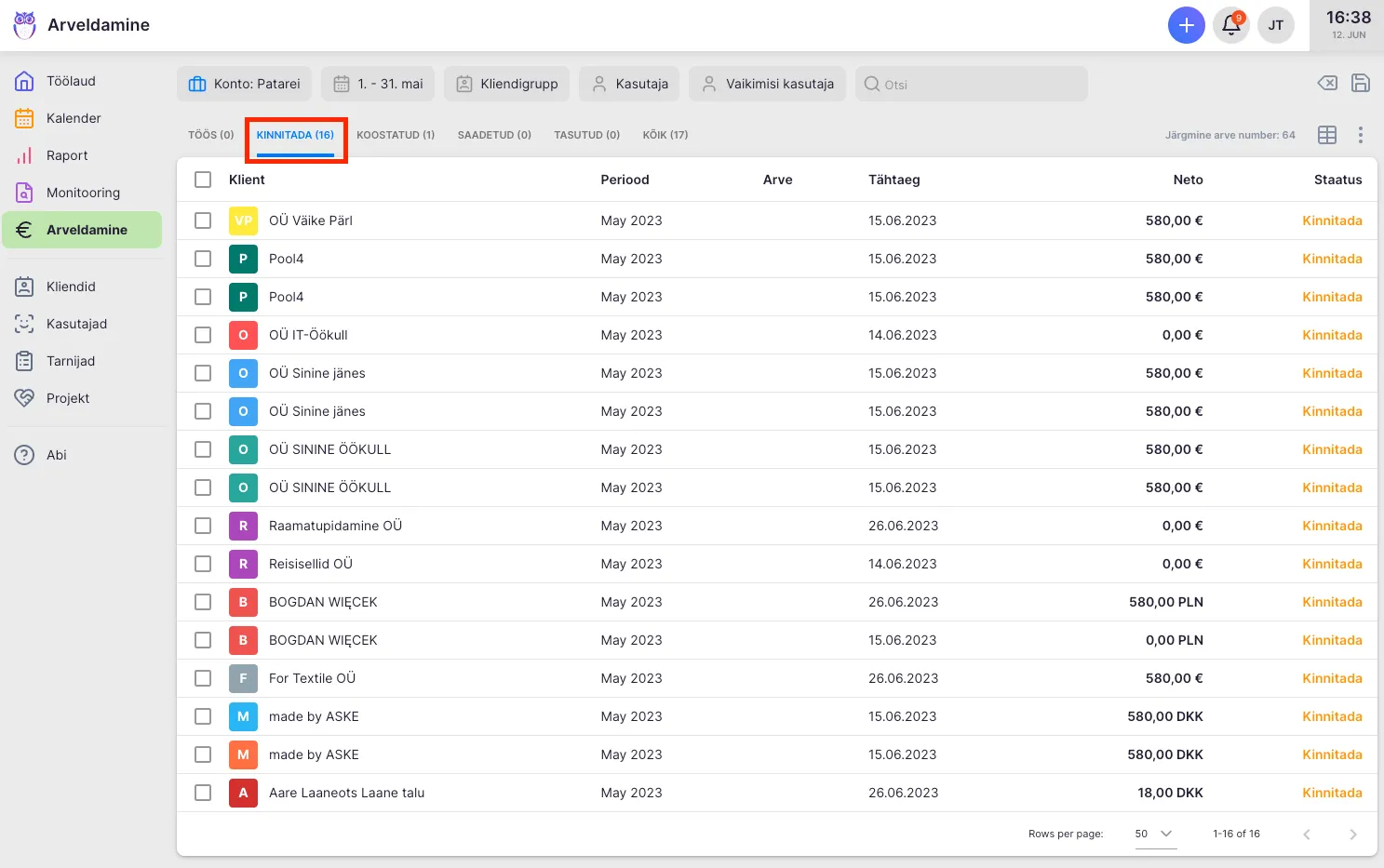 - Saatmata - kuvab koostatud arveid, mille PDF pole kliendile veel saadetud