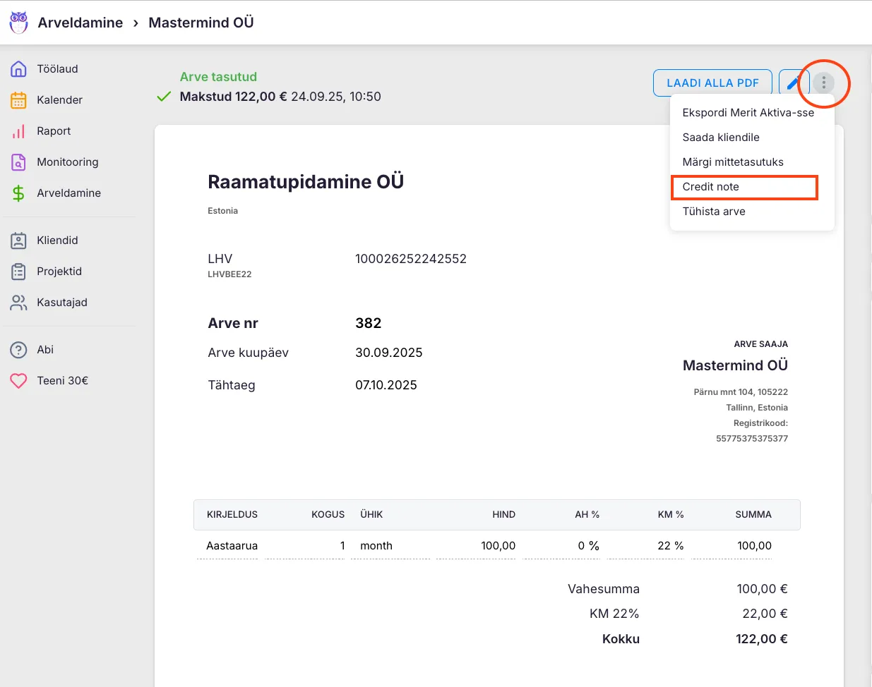 Uku-s saab kreeditarve luua otse arve vaatest, mis teeb parandused lihtsaks ja jälgitavaks.