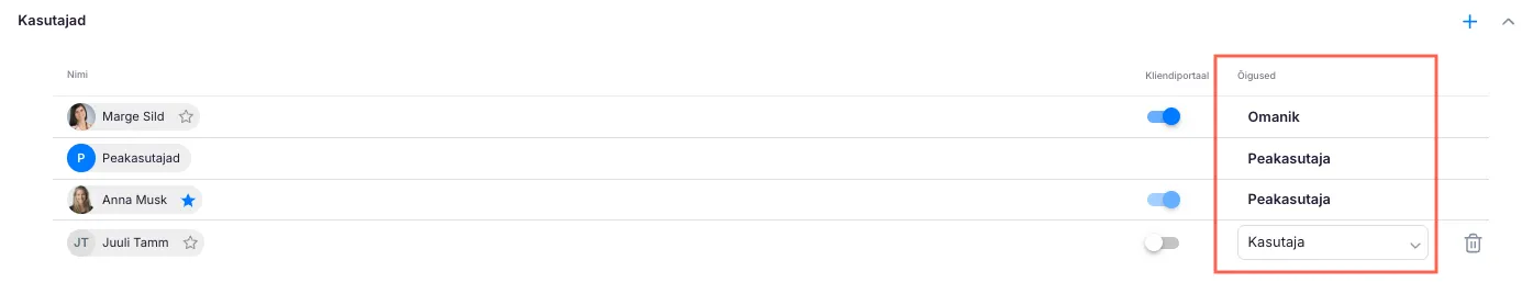 Section titled “3. Kuidas kontrollida kasutaja õigusi”Et näha, millised õigused on töötajal konkreetse kliendi puhul: