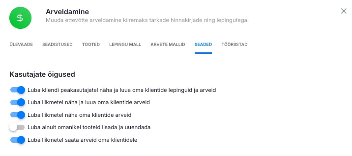 Section titled “5. Ettevõtteülesed arvelduse seaded”Kui soovite, et töötajad saaksid hallata arveid kõigi oma klientide puhul: