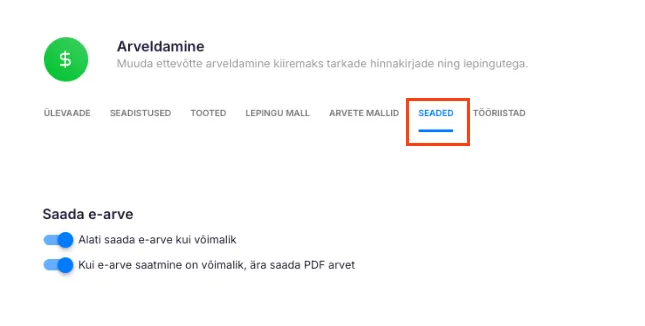- Kui see on väljas, e-arve võimalust automaatselt ei kasutata (saadetakse PDF vastavalt teistele seadetele).