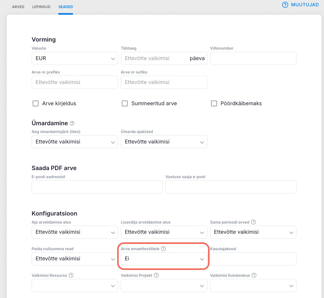 - Kui seadistus tehti hiljem kui arve kuupäev, siis see ei mõjuta juba koostatud arveid