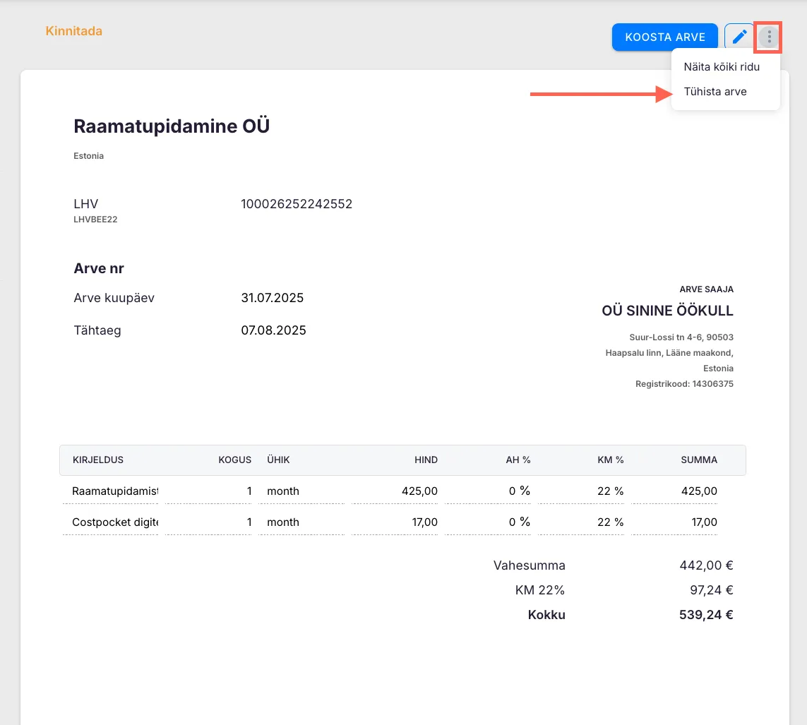 NB! Tuleta meelde, kas seadistus oli valitud enne arve koostamise kuupäeva.