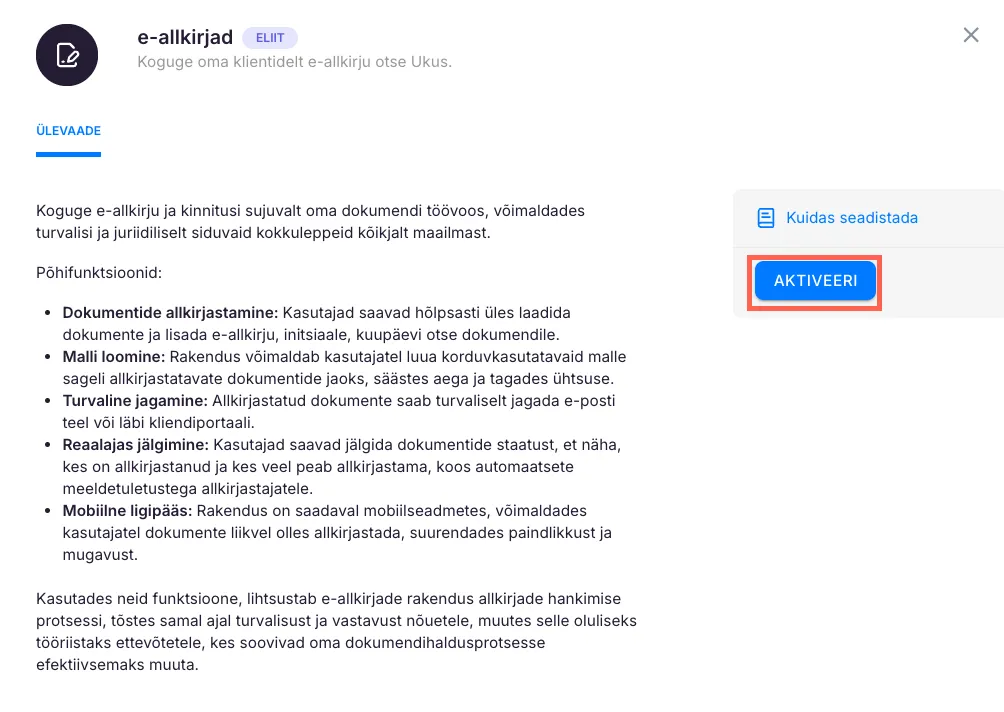 Section titled “Kuidas aktiveerida E-allkirjade äpp?”-