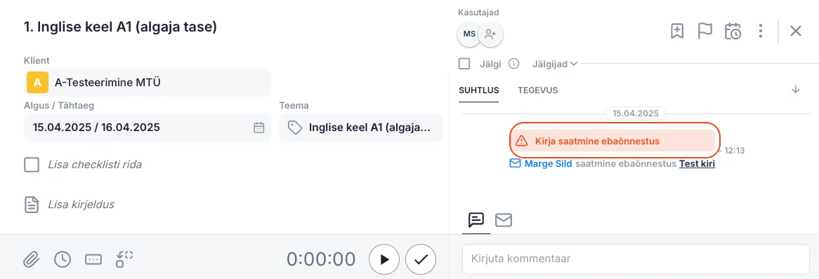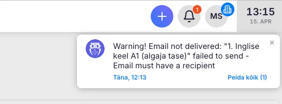 Klõpsa Uku teavituste all veateatele. Sind suunatakse automaatselt ülesandele, kus e-kirja saatmine ebaõnnestus.