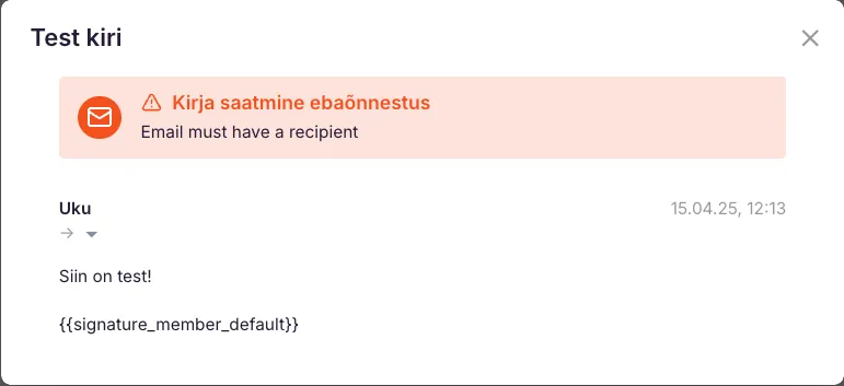 Kui Uku ei saa e-kirja välja saata, ilmub vastavasisuline teavitus Uku teavituste alla.