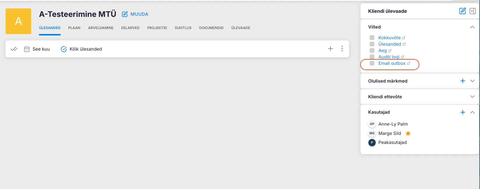 Liigu kliendikaardile ja vali “Email Outbox” või